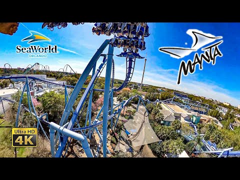 Manta Roller Coaster On Ride Ultra HD 4K POV Normal and Horizon Locked S...